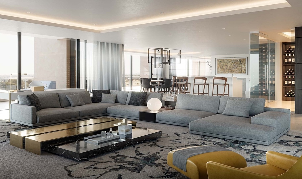 Cozy Özel Ölçü Köşe Koltuk, sadece bir oturma grubu değil, aynı zamanda salonunuzun karakterini belirleyen bir sanat eseri gibidir. Tasarımın bütünleştiği geniş uzanma modülleri ve aralara serpiştirilen kontrast renkli kırlentler, mekana hareketlilik katar. Görseldeki devasa yaşam alanında olduğu gibi, geniş pencerelerden gelen doğal ışıkla buluşan antrasit kumaş, odanın genel aydınlatmasıyla senkronize bir şekilde parlayarak lüks algısını pekiştirir.