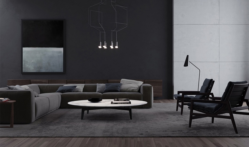 Dublin serisinin tasarım dili, "sessiz lüks" kavramını salonun her köşesine yaymak üzerine kuruludur. Görseldeki koyu gri tonlarının siyah duvarlar ve brüt beton detaylarla kurduğu diyalog, mekanın hacmini olduğundan daha geniş ve etkileyici gösterir. Alçak profil yapısı sayesinde tavan yüksekliğini optik olarak artıran bu köşe koltuk, yere yakın duruşuyla modern ve güven veren bir silüet sergiliyor. Tasarımda kullanılan geniş ve dolgun kol yapısı, koltuğun heybetini artırırken aynı zamanda kullanım esnasında pratik bir destek alanı sunuyor.