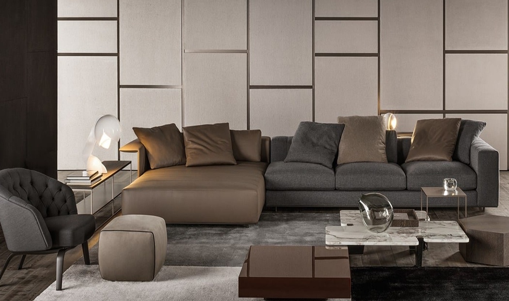 Madrid serisinin en dikkat çekici ve ayırt edici özelliği, kumaş ve deri dokularının aynı gövde üzerinde yarattığı büyüleyici kontrasttır. Görselde de vurgulandığı üzere, uzanma modülünde tercih edilen taba rengi deri dokusu, ana gövdedeki antrasit dokuma kumaş ile birleşerek mekana çok katmanlı bir zenginlik katar. Bu bilinçli malzeme seçimi, mobilyanın sadece bir oturma alanı değil, aynı zamanda mekanı tanımlayan bir sanat objesi olarak algılanmasını sağlar. Alçak profil yapısı ve yere yakın gövdesi, tasarıma sağlamlık ve dinginlik hissi verirken; geniş kolçak ve sırt minderleri görseldeki o vakar duruşu tamamlar.
