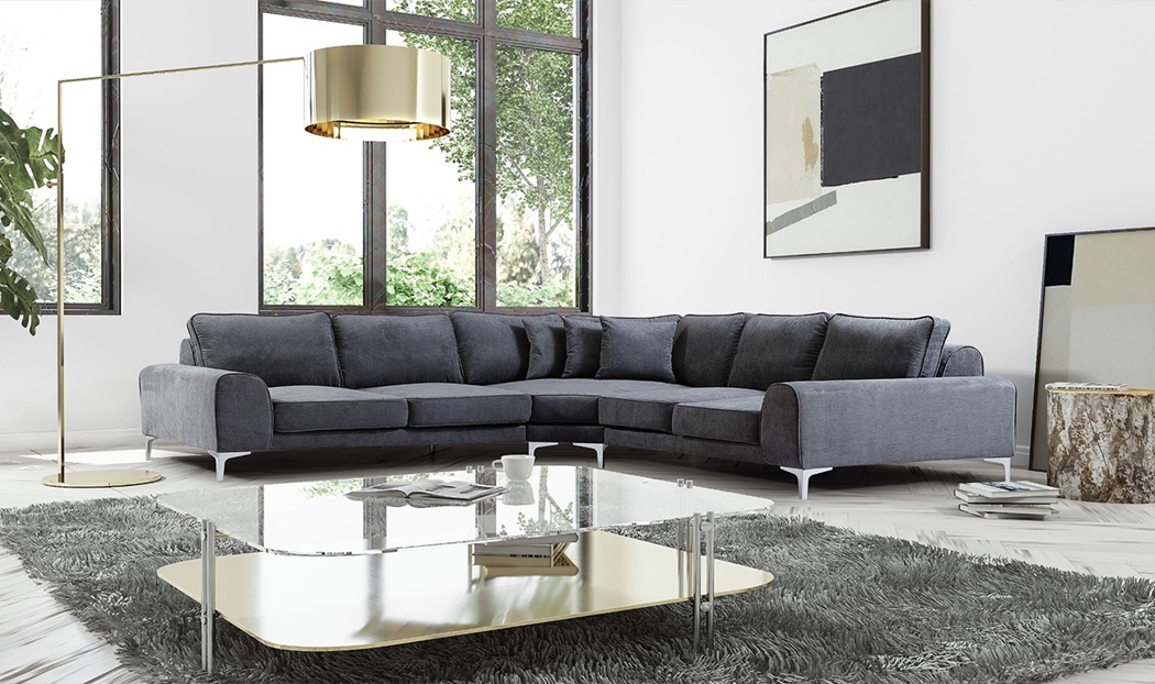 Prestige Geniş Oturum Köşe Takımı, dekorasyonda çok yönlü bir kullanım imkanı sunar. Onu gold detaylı bir lambader ve cam yüzeyli şık bir orta sehpa ile kombinleyerek "modern lüks" bir atmosfer yaratabilirsiniz. 2026 ev trendlerinin merkezinde yer alan gri ve altın uyumunu yakalamak için takımı büyük formlu metal aksesuarlarla tamamlamak mümkündür. Zeminde kullanılan gri tonlarındaki tüylü halılar ve minimalist tablolar, koltuğun antrasit rengini daha fazla ön plana çıkararak salonun enerjisini yükseltir.