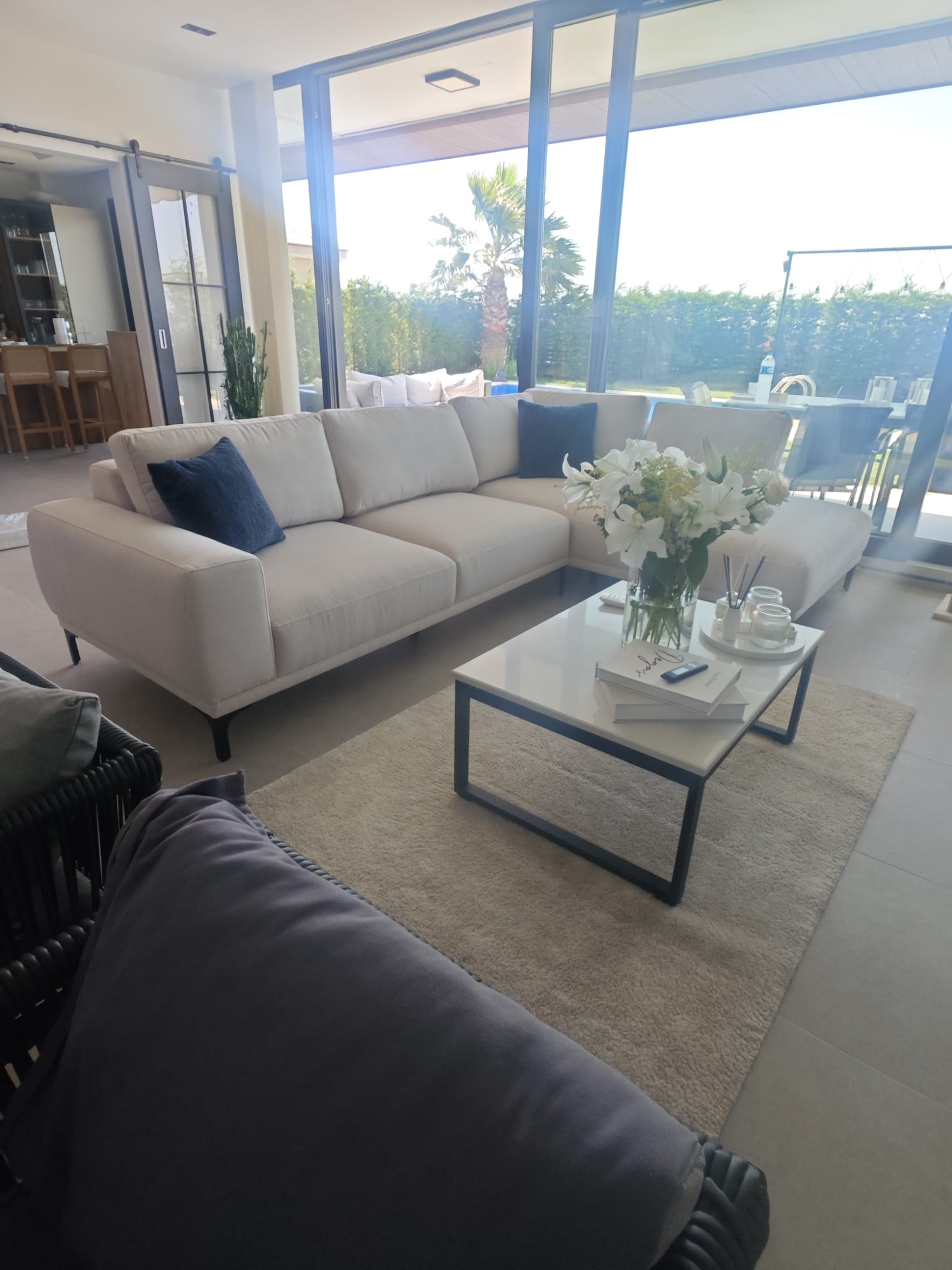 Seul Yüksek Ayaklı Köşe Koltuk, nötr renk tonları sayesinde çok çeşitli dekorasyon stillerine zahmetsizce entegre olur. Görseldeki gibi lacivert veya antrasit tonlarındaki dekoratif yastıklarla kombinlendiğinde, mekanda modern ve canlı bir kontrast yakalanabilir. Minimalist beyaz orta sehpalar, açık tonlu halılar ve büyük yapraklı bitkilerle desteklendiğinde, 2026 ev trendlerinin merkezinde yer alan "modern natüralizm" akımını salonunuza taşır. İster modern bir rezidans dairesinde ister geniş bahçeli bir villada olsun, Seul modeli her zaman prestijli ve davetkar bir duruş sergiler.